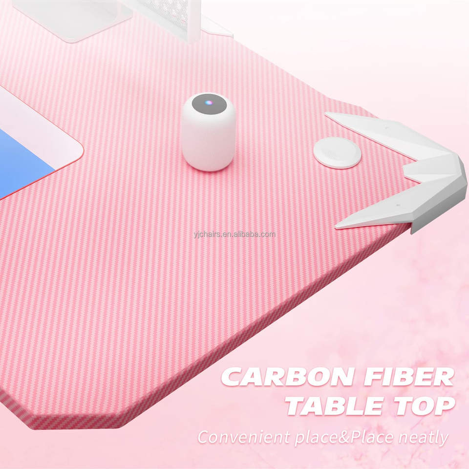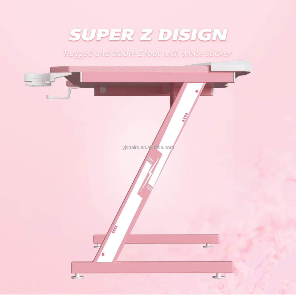 Muestra gratis de escritorio de juego rosa con marco de metal personalizado con luz LED RGB para niñas Gamer ordenador PC Gamer mesa de juego Escritorio