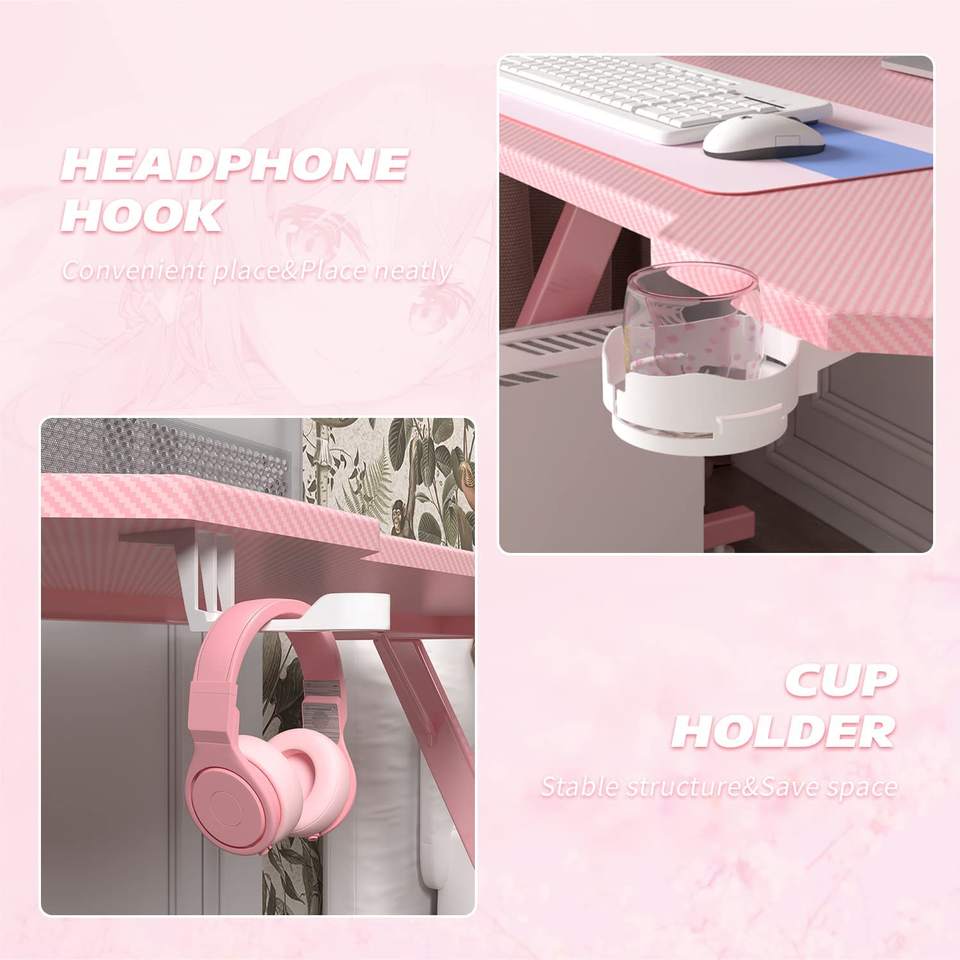 Muestra Gratuita, Diseño Personalizado de PC, Escritorio Rosa, Mesa de Computadora Económica para Juegos en Casa, Escritorio para Juegos en Forma de Z