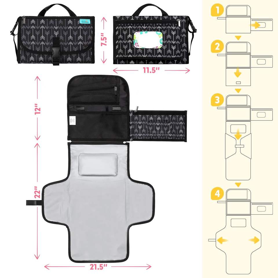 Muestra Gratuita de Tapete Portátil Impermeable para Cambiar Pañales, con Diseño de Parches, Material de Poliéster, Funciones Anti-Robo y USB