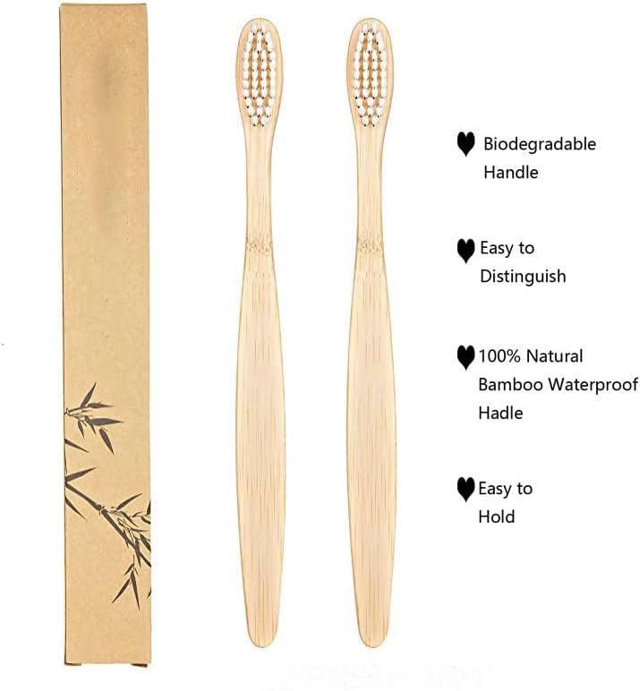 Juego de 2 cepillos de dientes de cuidado dental para adultos, Material PBT desechable, cerdas de nailon medio suave marrón para uso en viajes en el hogar, caja de embalaje