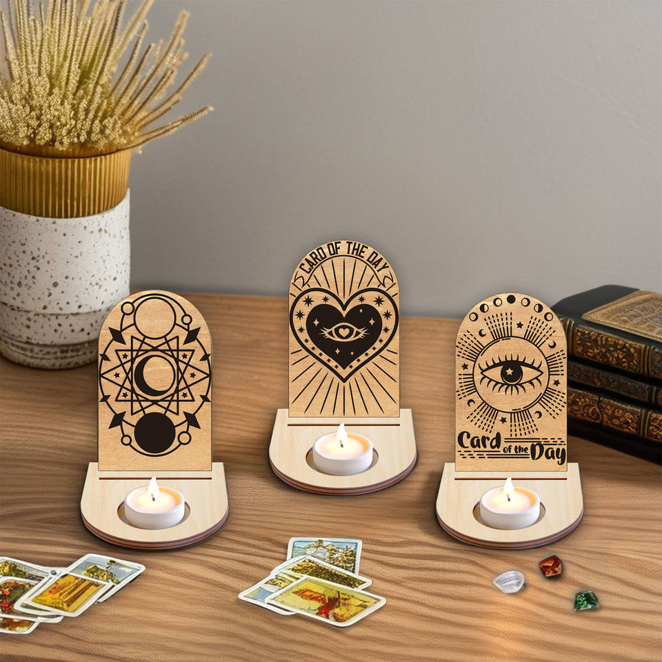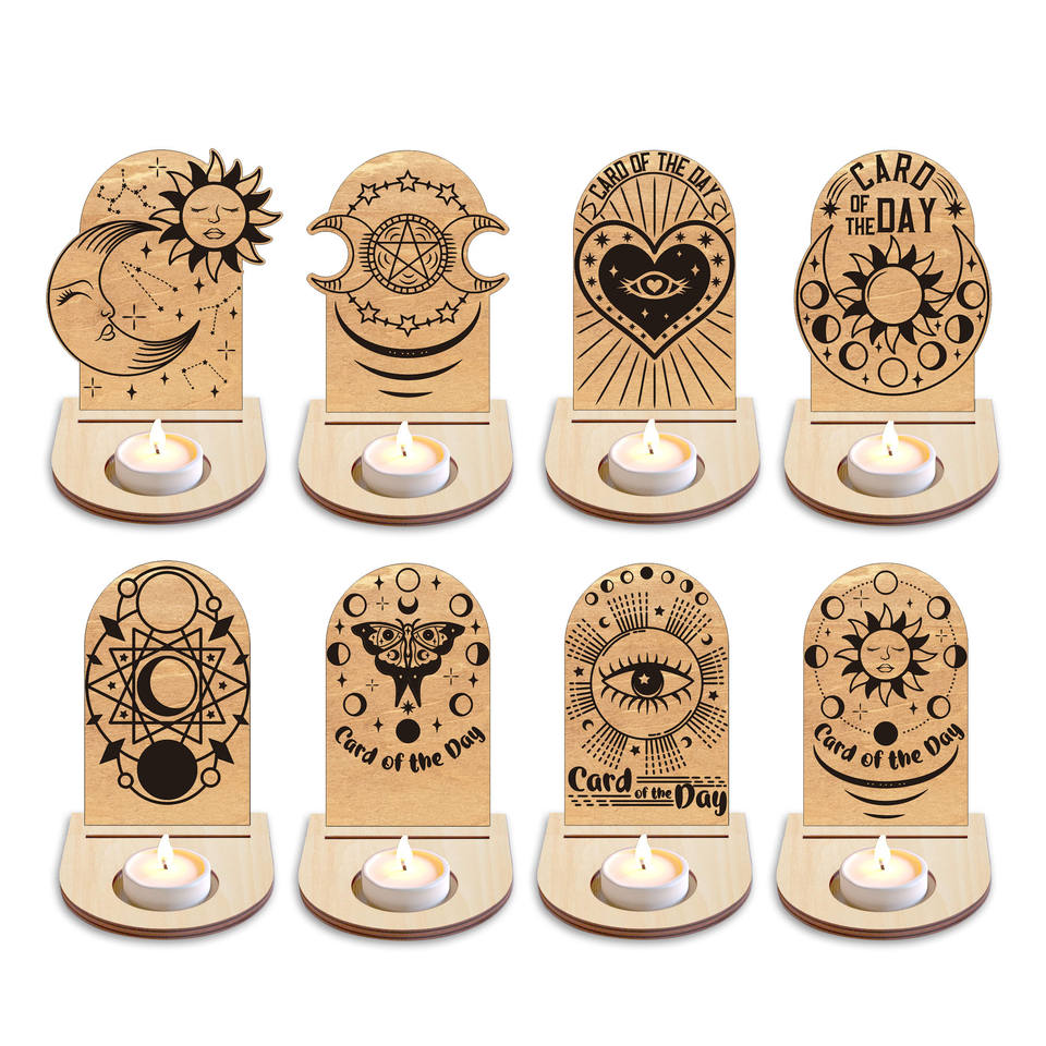 Muestra gratis personalizada bruja Altar Tarot tarjeta soporte candelabros fase lunar Tarot tarjeta soporte de madera Tarot titular de la tarjeta