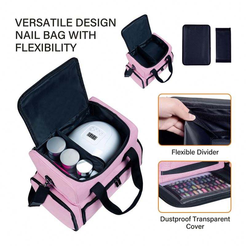 Muestra Gratuita de Bolsa de Transporte de Doble Capa para Técnicos de Uñas (Rosa Intenso) con Capacidad para 48 Esmaltes de Uñas, Negro Azabache, PZM9210