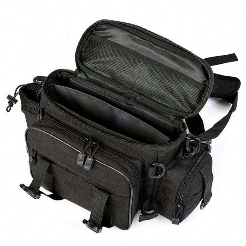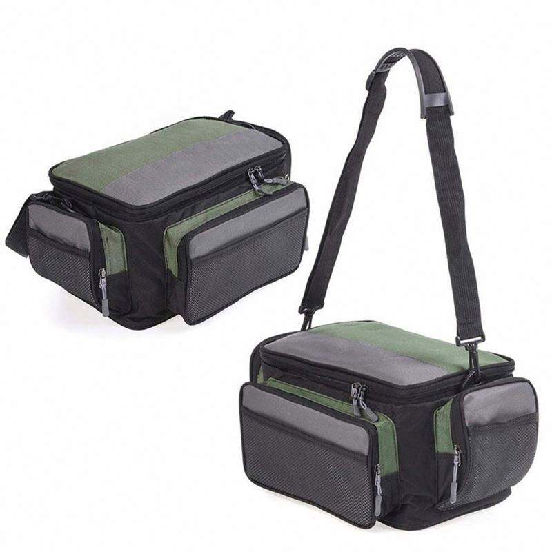 Bolsa de aparejos de caña de pescar duradera con muestra gratis, estuche organizador, bolsillos de almacenamiento y correa para el hombro para llevar