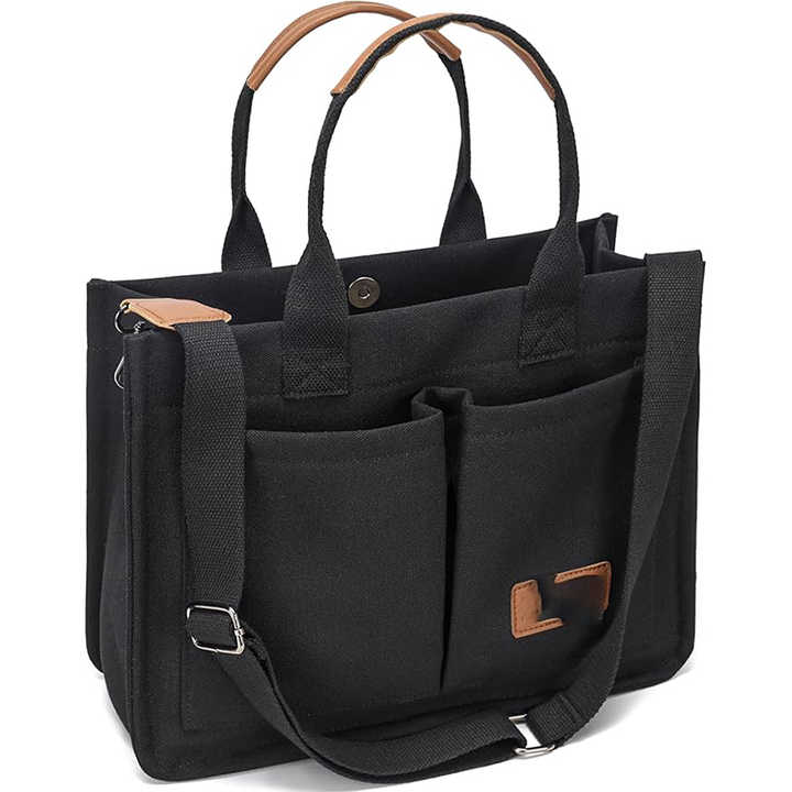 Bolsa de Compras de Lona Negra Extra Grande de Muestra Gratuita, Bolsa de Supermercado Reutilizable para Fin de Semana con Cierre de Cremallera, Bolsa de Viaje para la Playa