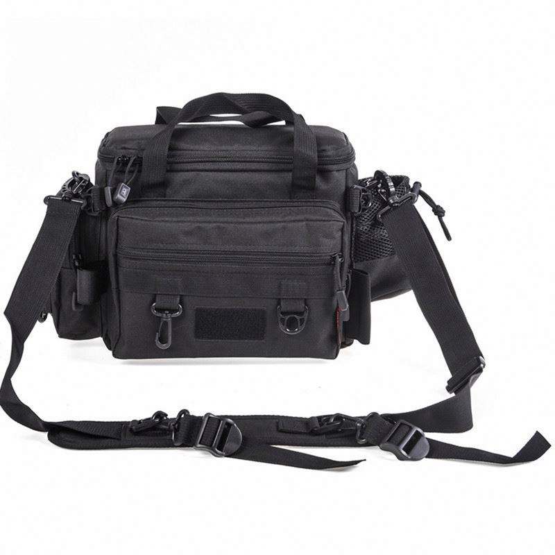 Muestra Gratuita, Venta al por Mayor de Fábrica, Bolsa de Pesca Portátil Multiusos Negra, Suave con Correa de Hombro Acolchada