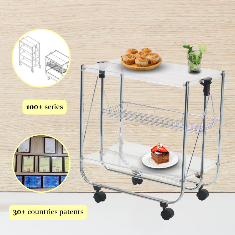Carro plegable de la comida del tubo Oval de la muestra libre con la cesta de alambre y la ruedaNombre del producto
