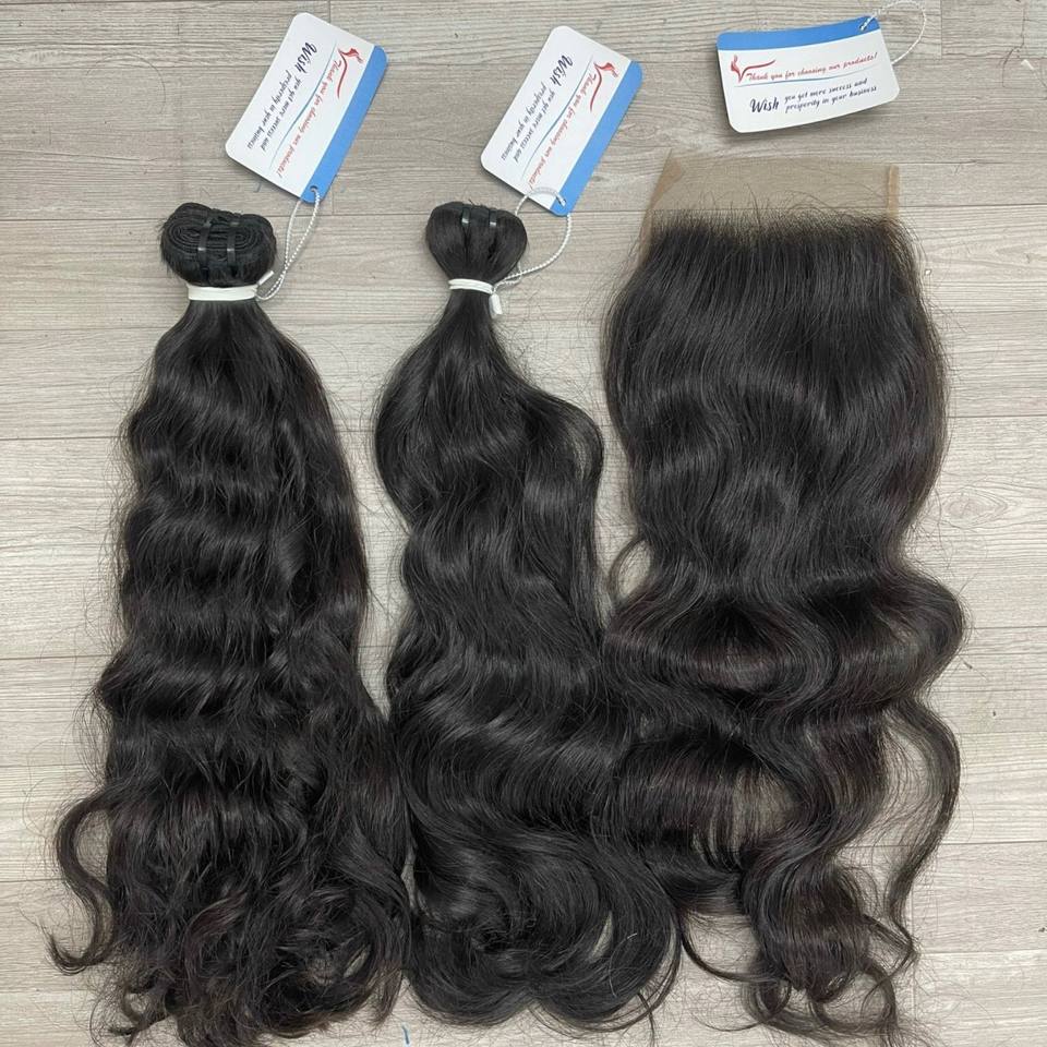 Muestra gratis Extensiones de cabello Cutícula alineada Cierre de encaje de cabello humano, sin procesar 100% Cabello humano peruano con cierre de encaje