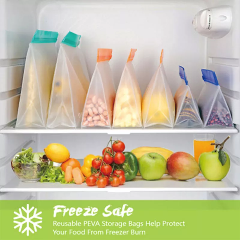 Muestra gratis sellado en caliente transparente PEVA Stand Up bolsa para bolsas de almacenamiento de alimentos