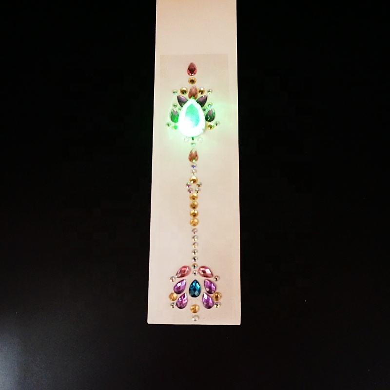 Muestra gratis LED Light up Face Gems Sticker Bindi Face Jewels Brilla en la oscuridad Rhinestone Blinger Hair Gems