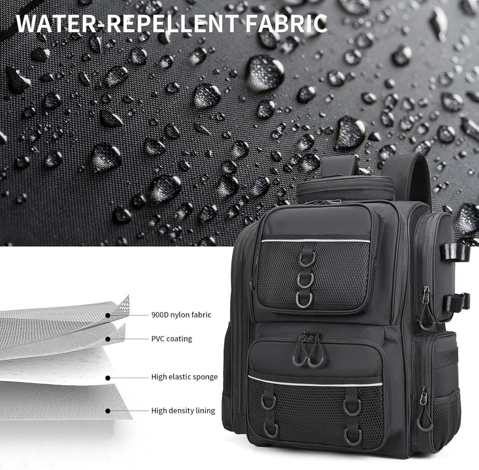 Muestra gratuita Mochila de pesca grande de 40L con soportes para caña para almacenamiento de equipo de pesca para acampar y senderismo