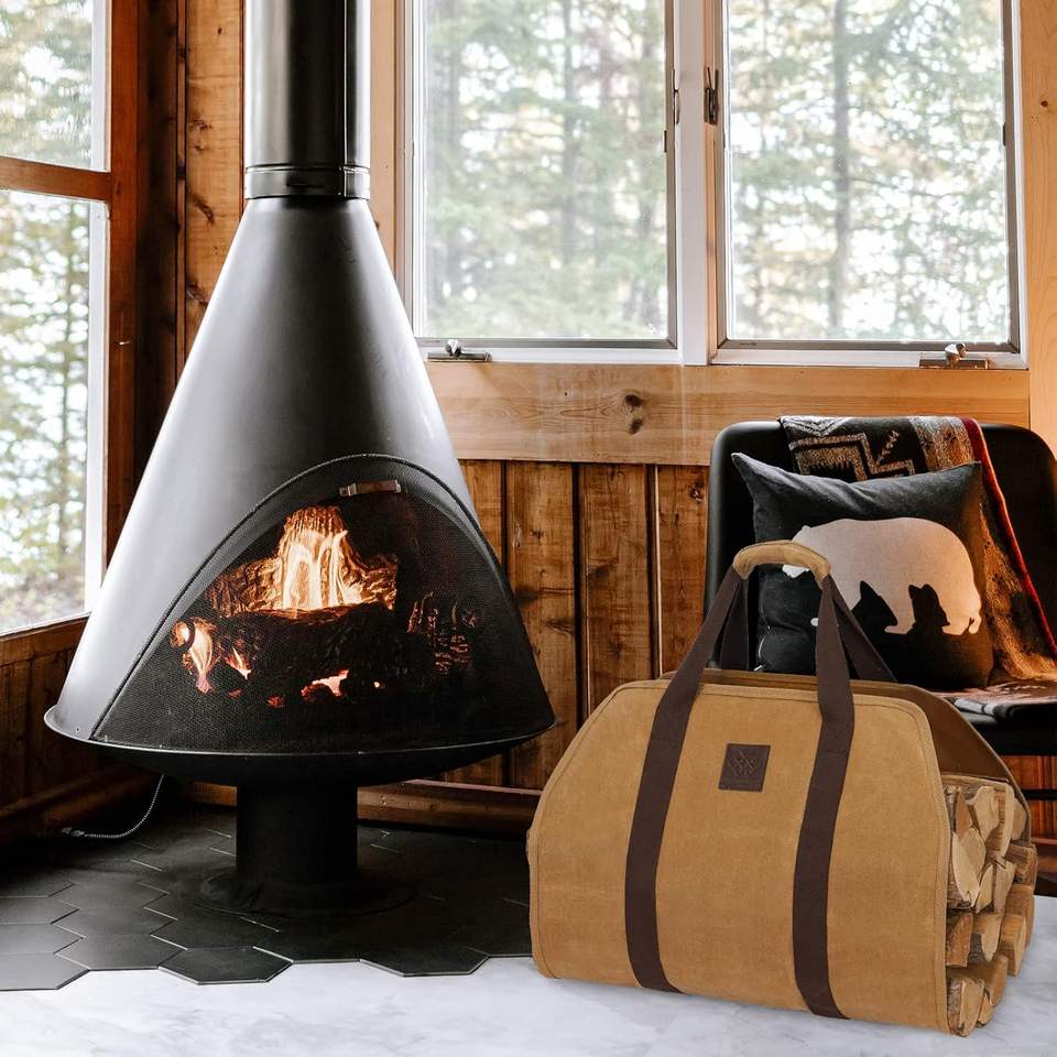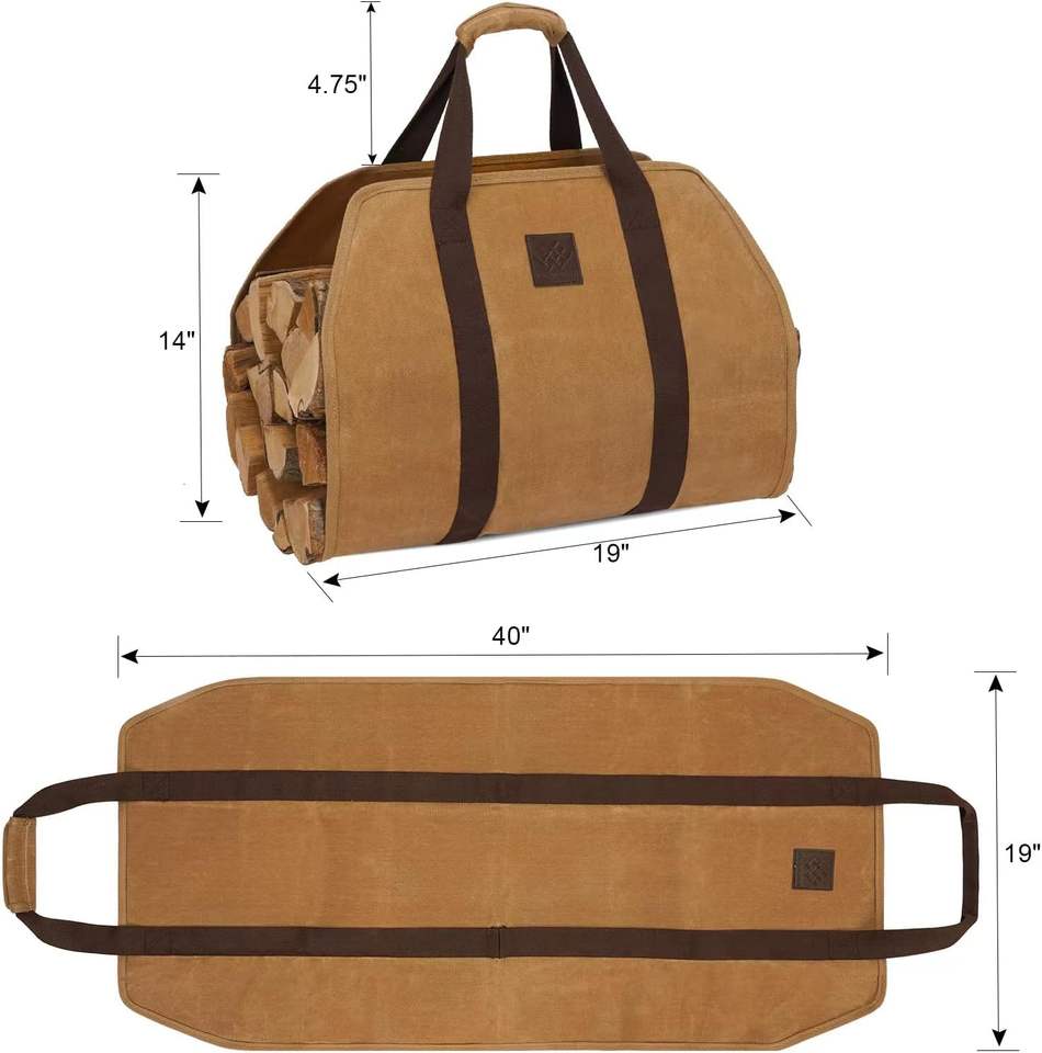 Muestra Gratuita de Porta Leña de Cuero, Bolsa de Almacenamiento de Leña para Chimenea, Bolsas de Lona Encerada para Leña a Precios de Fábrica