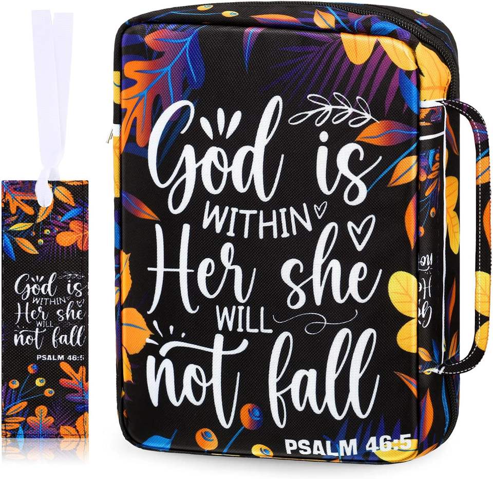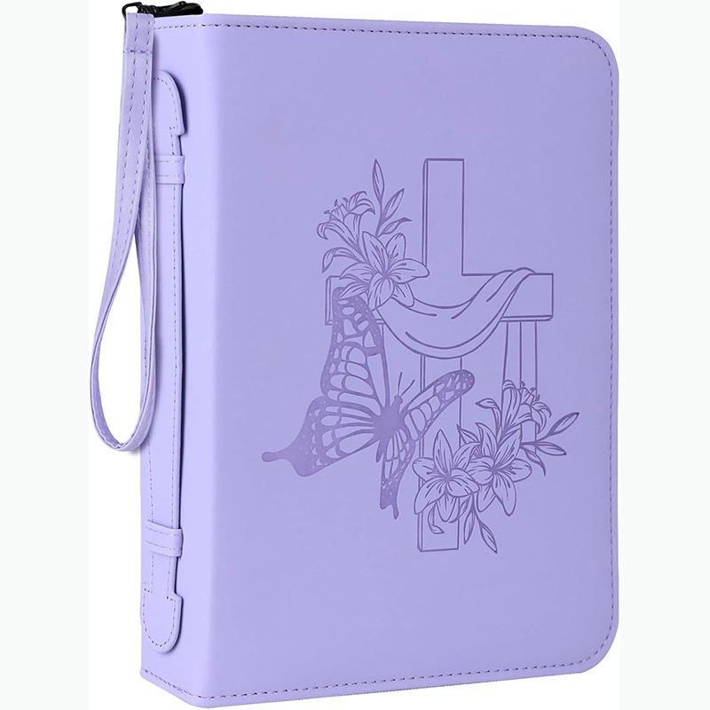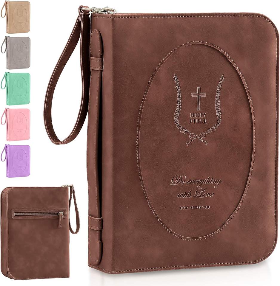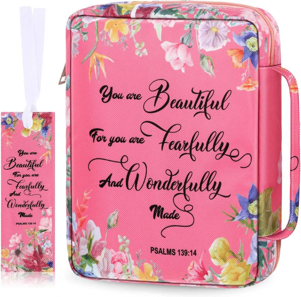 Muestra Gratuita de Bolsa para Biblia con Cremallera de Cuero PU, Estuche para Biblia con Versículos Bíblicos de Margaritas y Mariposas, Bolsa Portátil para Transportar la Biblia