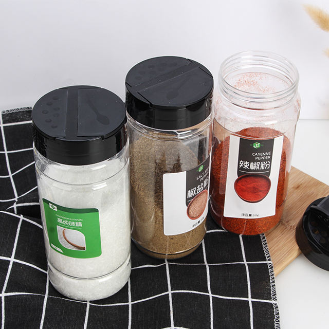 Agitador de plástico para embalaje de pimienta y mascotas, tarros de especias de plástico/contenedores de sal y pimienta, agitador de especias de 400ml, muestra gratis