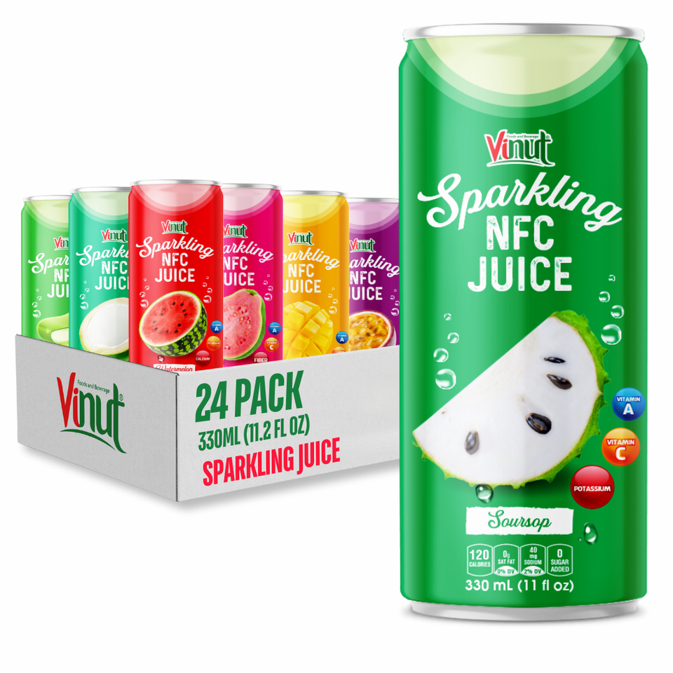Bebida de zumo de Guanábana espumosa 330ml OEM etiqueta privada muestra gratis