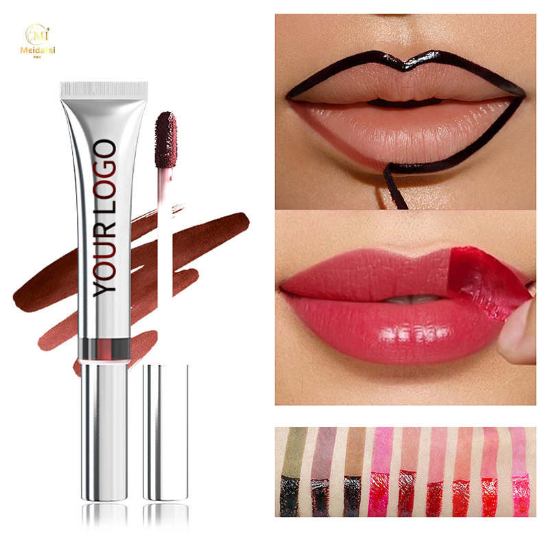 Muestra gratis Etiqueta Privada logotipo personalizado tatuaje Peel Off mancha de labios y delineador de labios de larga duración no pegajoso vegano rasgar tinte de labios