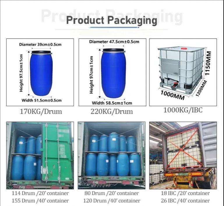 Paquete:170 kg/tambor, 210 kg/tambor, TANQUES IBC, BOLSAS FLEXIBLES