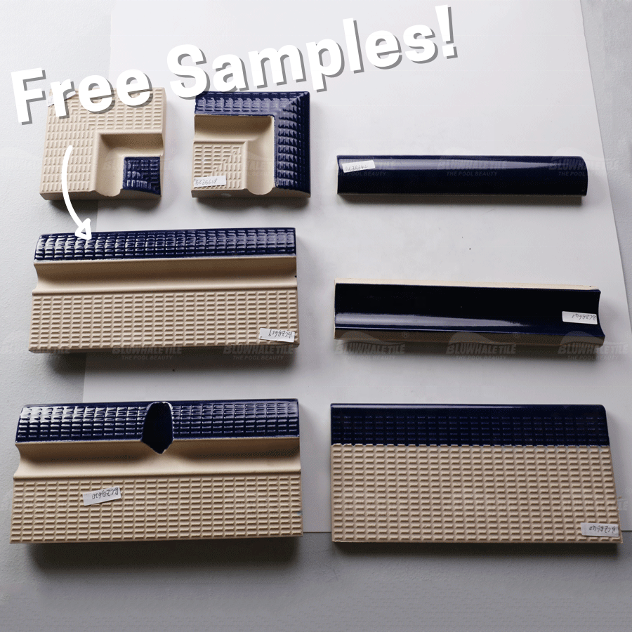 Punto de Venta:Obtenga muestras gratuitas de accesorios para azulejos de piscina