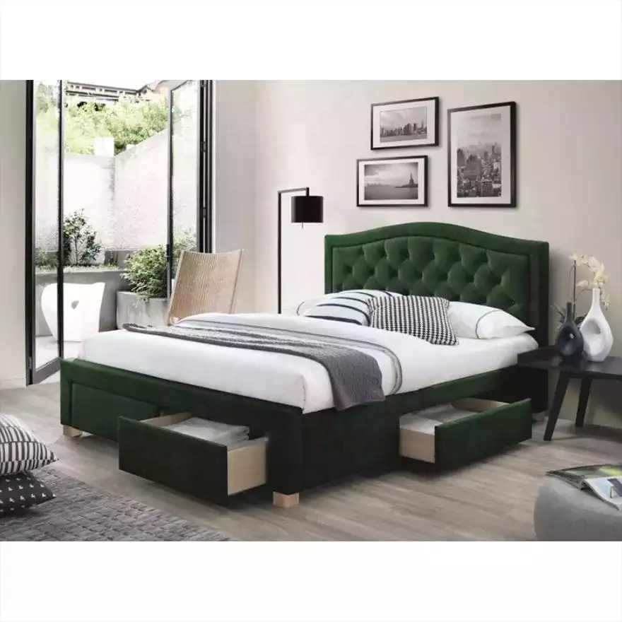 Cama georgiana del marco del tamaño completo del deber de Hevy en terciopelo con el cajón