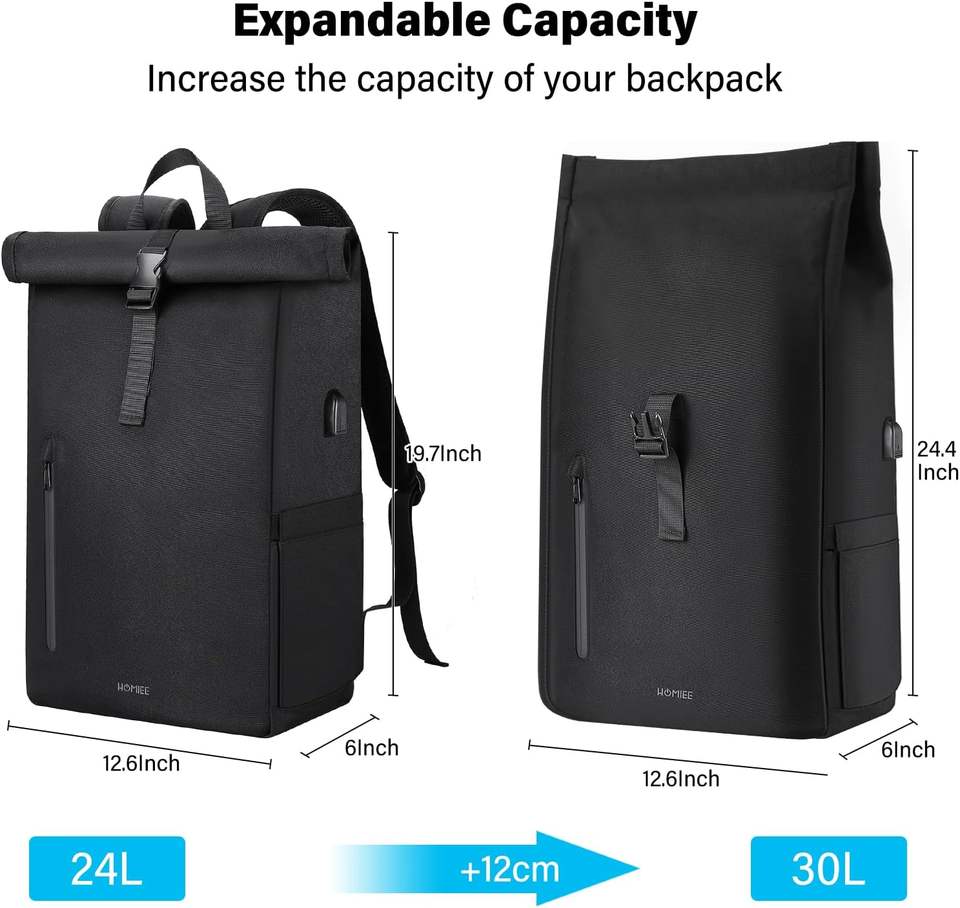 Muestra Gratuita, Mochila Enrollable Unisex Personalizada de Cuero y Nailon, Bolso Enrollable Convertible Informal para Hombre, Impermeable y Antirrobo