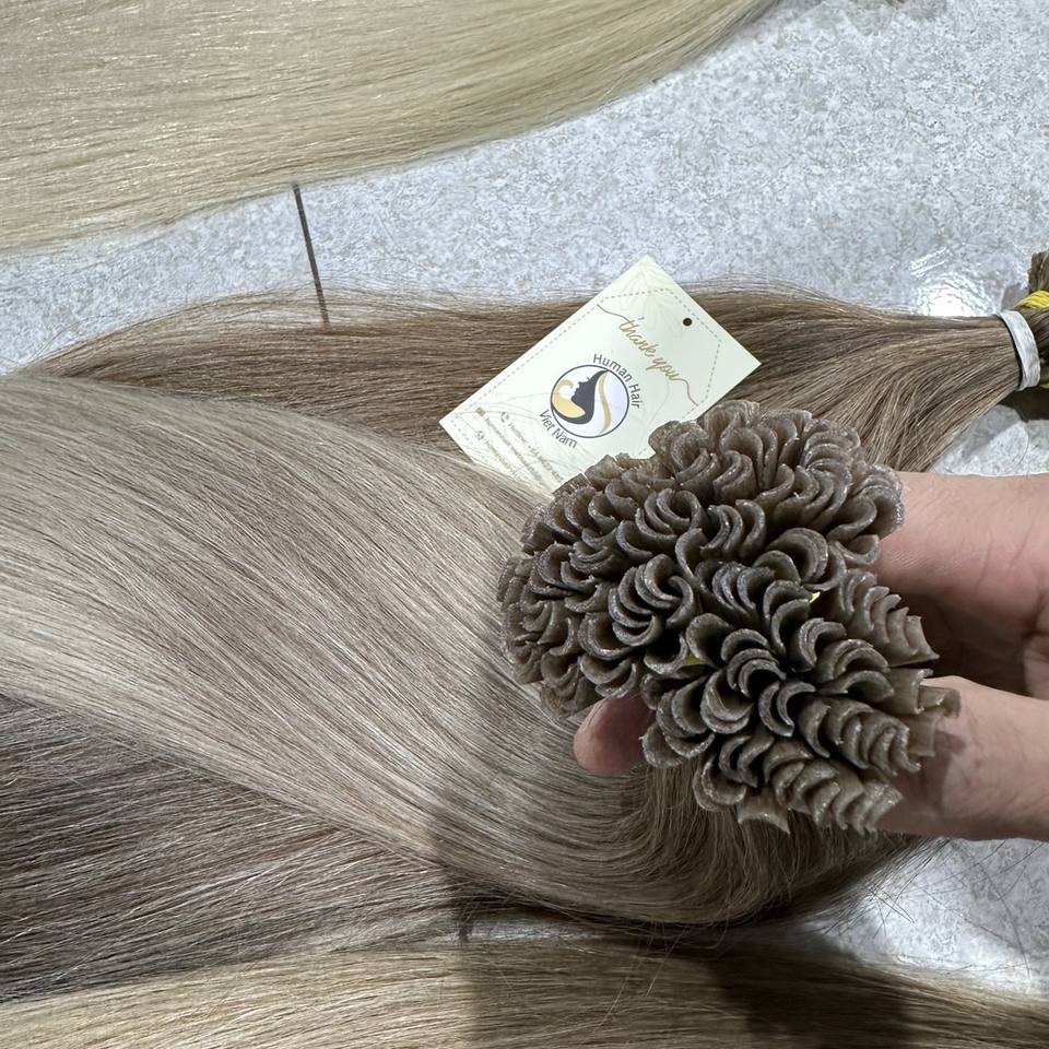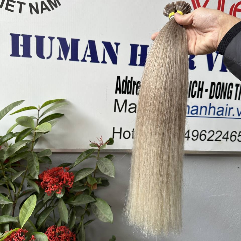 Muestra gratis de cabello humano Remy virgen vietnamita preadherido queratina Ombre Balayage U Tip Wave Curl Balayage peluca rubia gris
