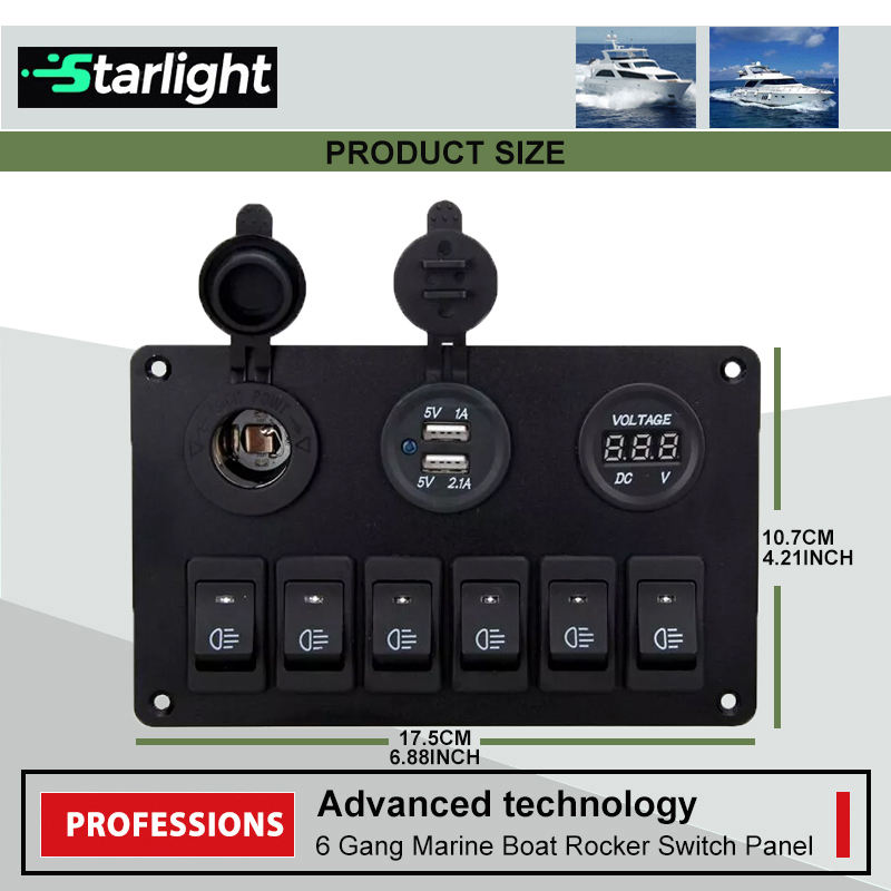 Tipo de producto:Toggle Rocker interruptor panel de aluminio impermeable con 6 Gang