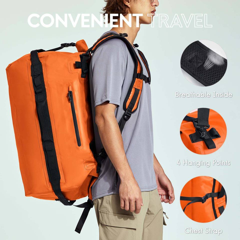 Bolsa de asiento trasero impermeable extensible de 40-60L, correas de hombro, deportes al aire libre plegables, almacenamiento de equipaje para motocicleta negra