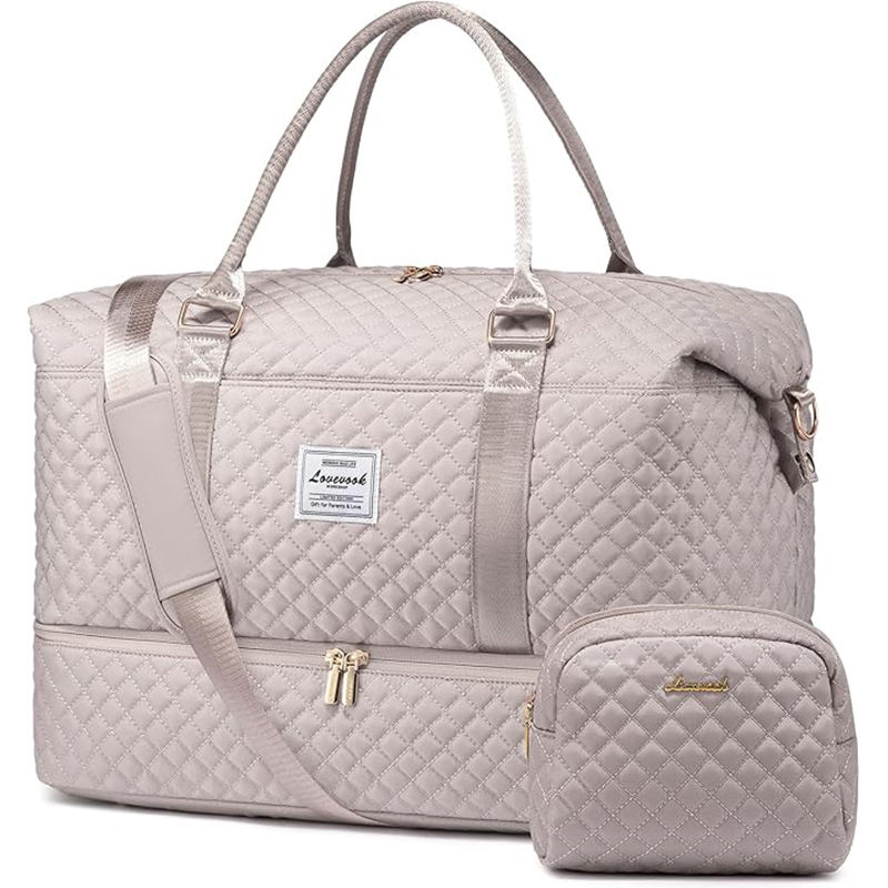 Muestra Gratuita de Bolsos de Lona para Mujer, Bolsos de Hombro de Fin de Semana, Bolsos de Viaje con Correa de Cuero PU, Bolsos de Viaje Tipo Duffel