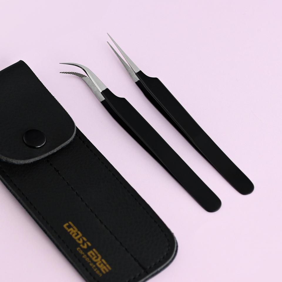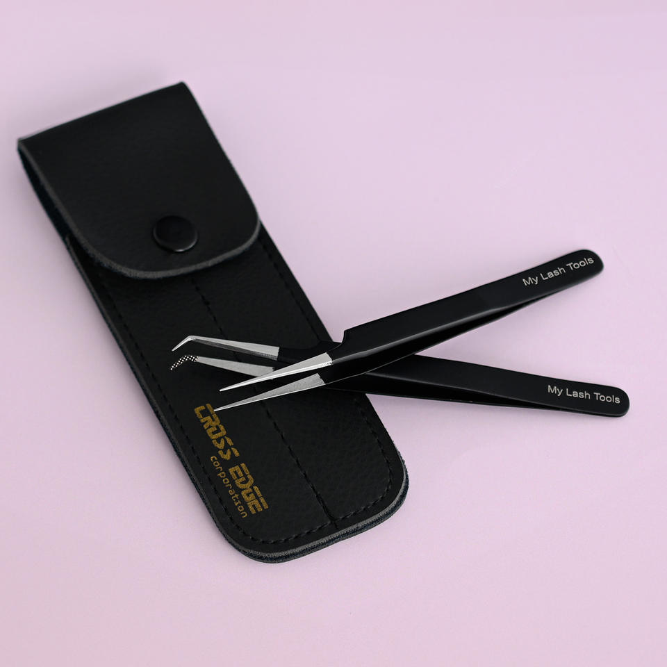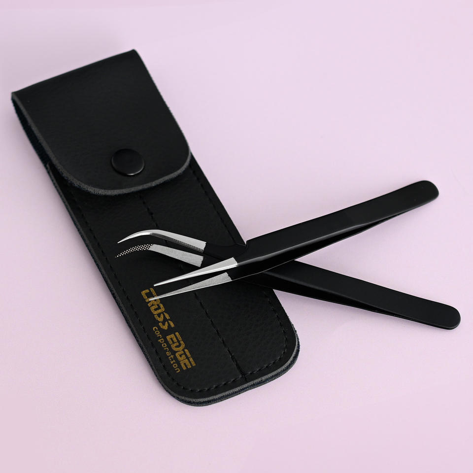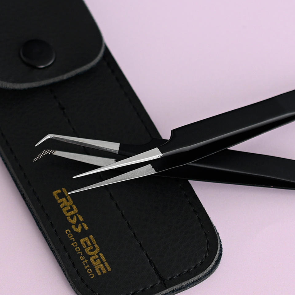 Pinzas de aislamiento de pestañas de volumen ruso de muestra gratis pinzas de pestañas de punta de fibra negra de acero inoxidable 45 90 grados extensión de pestañas