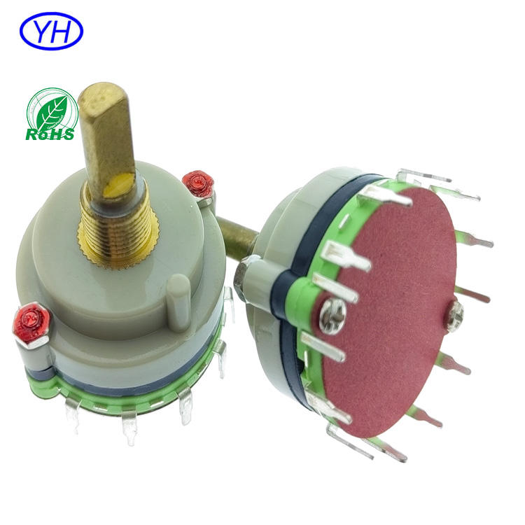 Muestras Gratis, Interruptor Rotatorio Personalizado ODM con Eje Metálico, Montaje Vertical en PCB, 32 mm, 2 Polos, 2~12 Posiciones, Pines de Montaje en PCB de 12 Posiciones