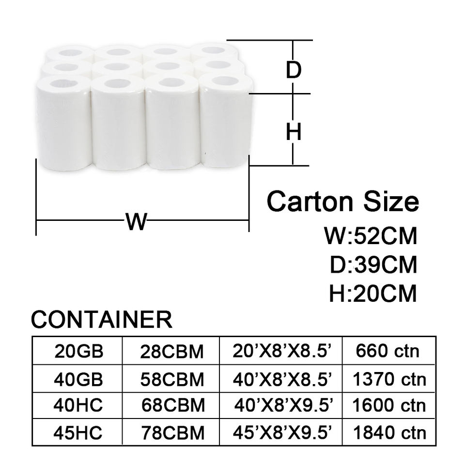 Embalaje:12 rollos/CTN