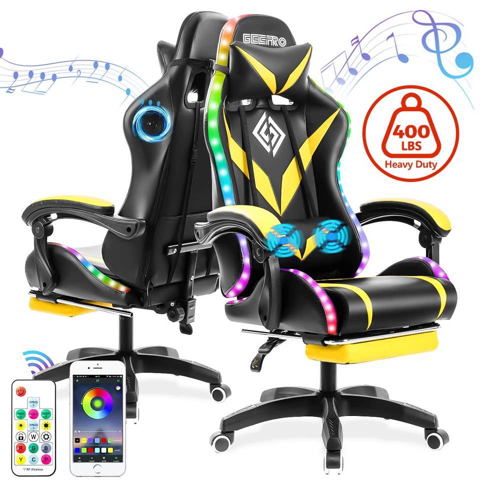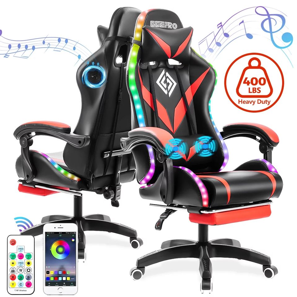 Envío Gratis, Silla de Computadora Ergonómica LED RGB, Juego de Ruedas para Silla Gamer, Azul Reino Unido, Silla de Juego Más Económica con Luces LED y Masaje