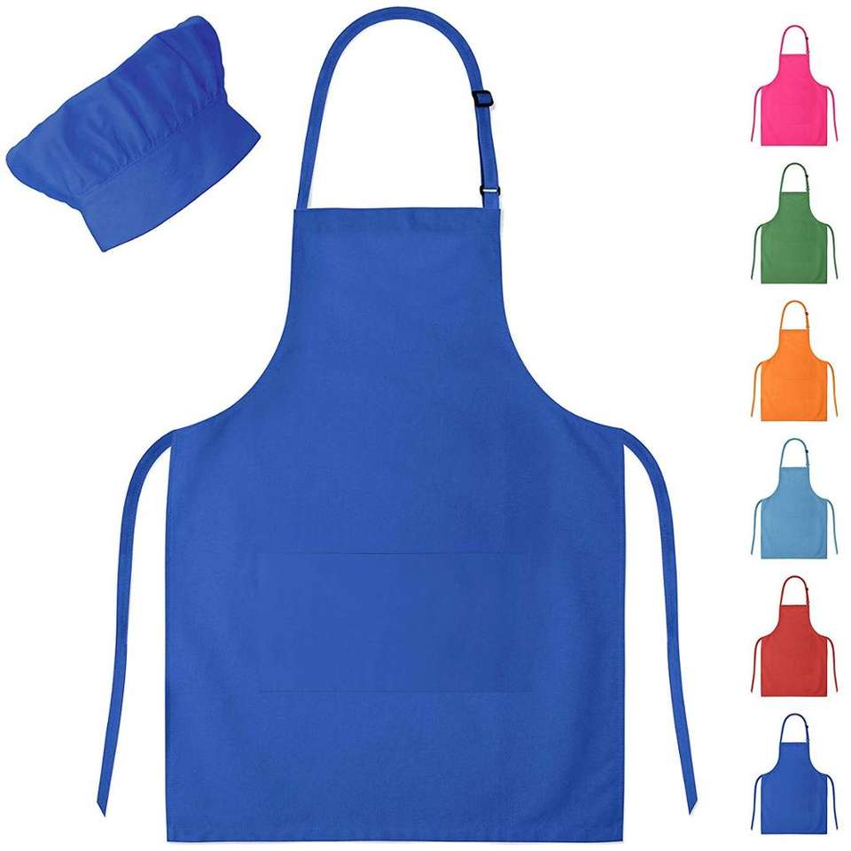 Gorro y delantal de Chef para niños y niñas, personalizado, barato, OEM, promocional, azul, envío gratis