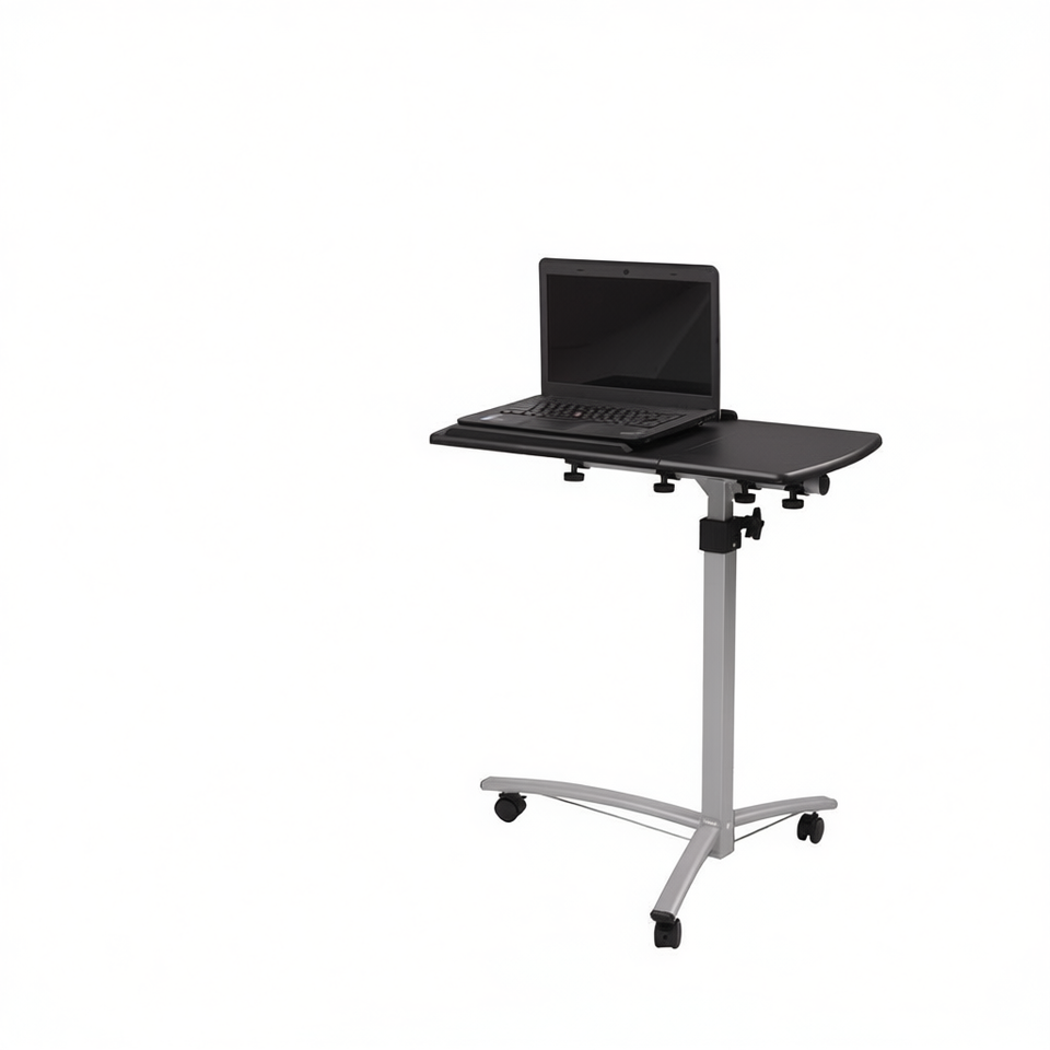 Escritorio Multifuncional para Computadora con Soporte para Laptop, para Uso en Oficina en Casa, Superficie de Plástico Negro, Marco Metálico, Altura Ajustable