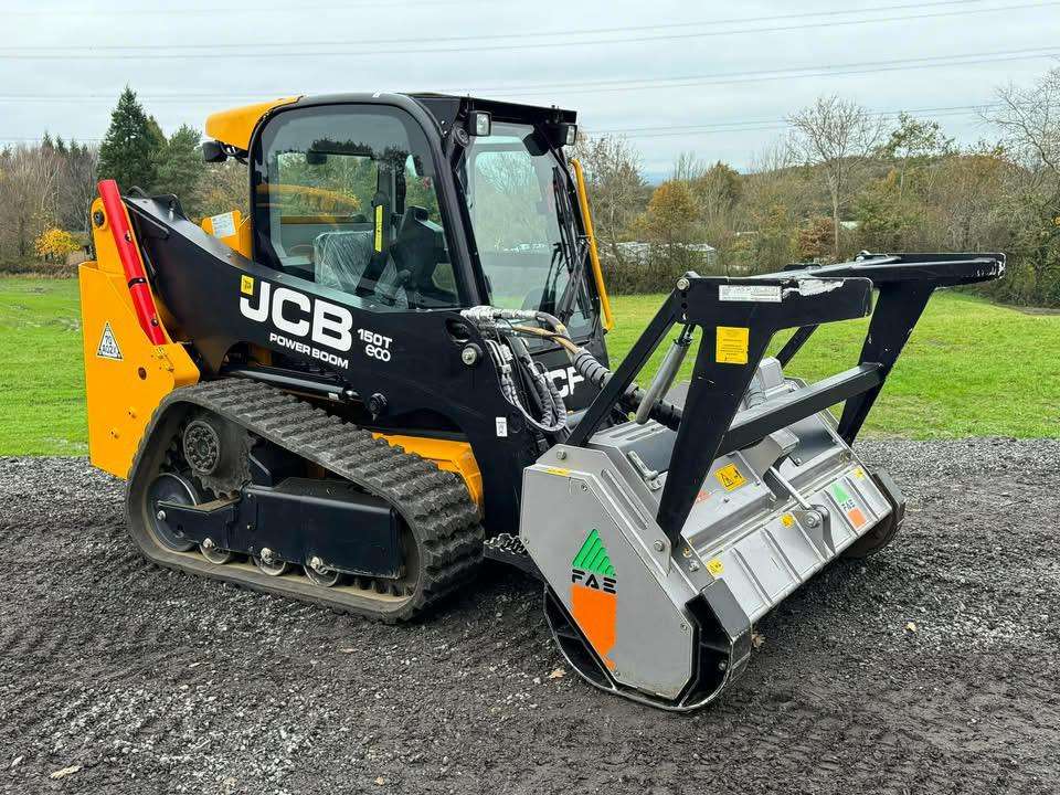 Cargador de oruga con orugas JCB 150T Eco Powerboom con accesorio Forest Mulcher, cargador de oruga aprobado por la CE EPA, Envío Gratis