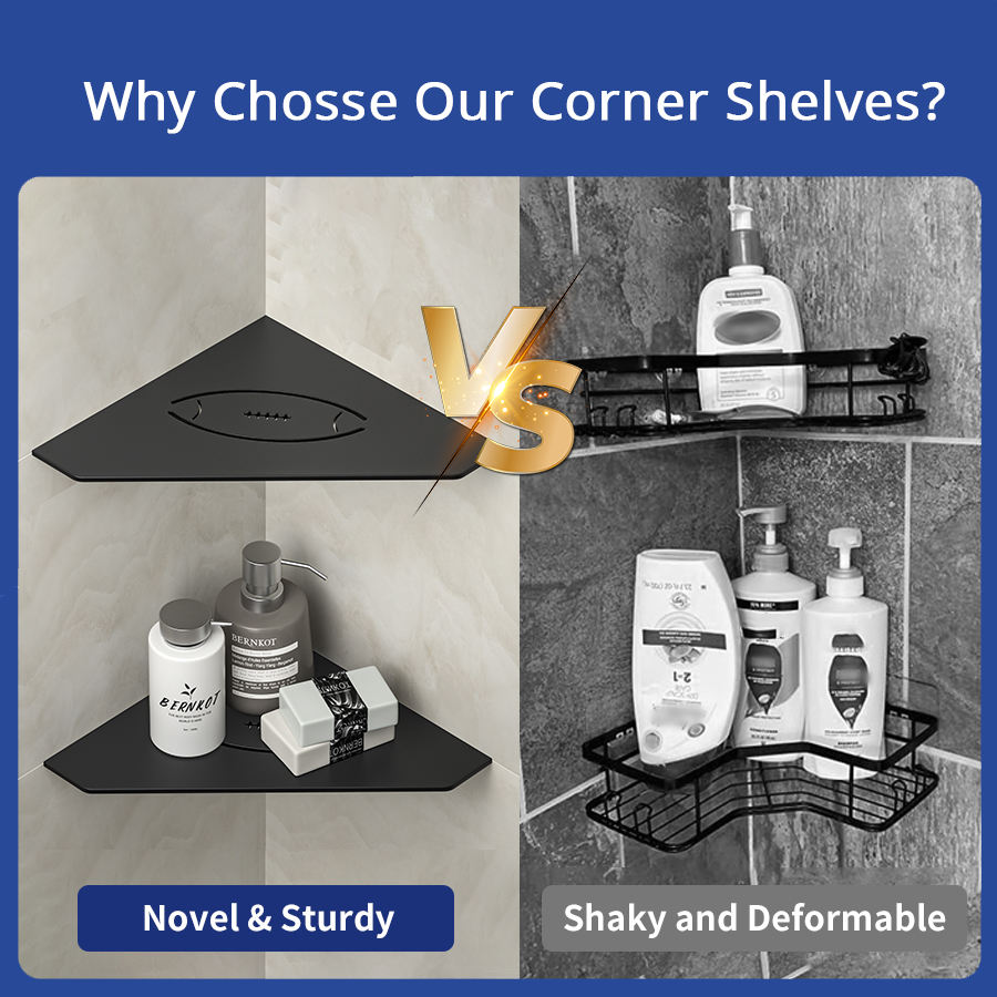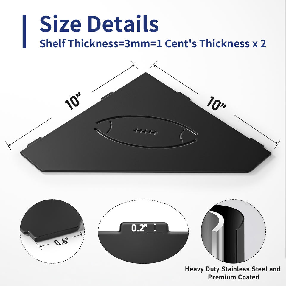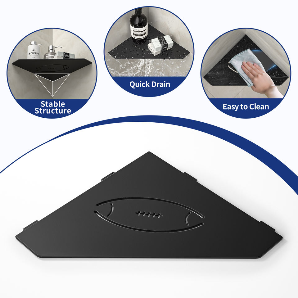Estante de ducha de esquina negro mate de 10 pulgadas, sin necesidad de perforar, recortes de acero inoxidable, aplicación de baño, Envío Gratis