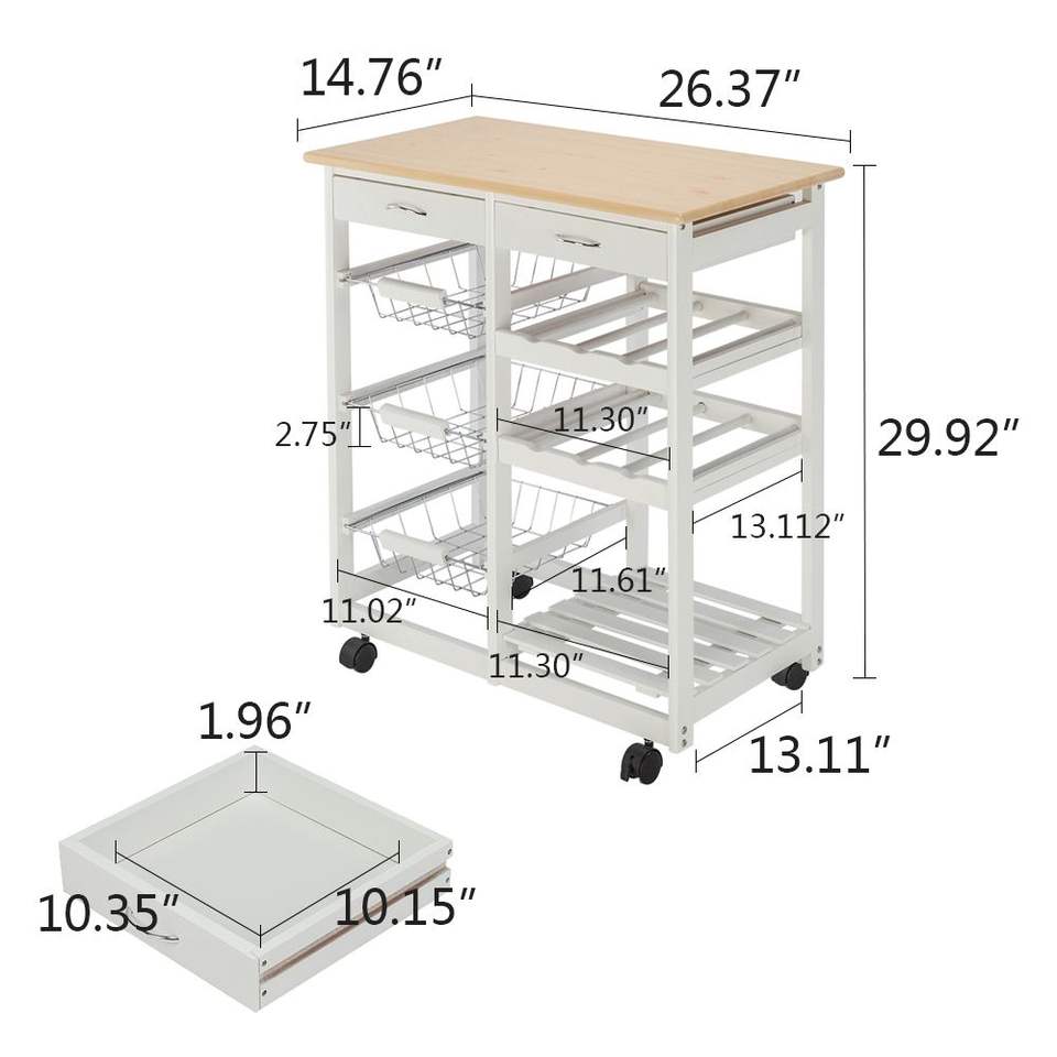 Envío Gratis: Carrito de Cocina Móvil Blanco YJ con Dos Cajones, Dos Portacopas y Tres Cestas