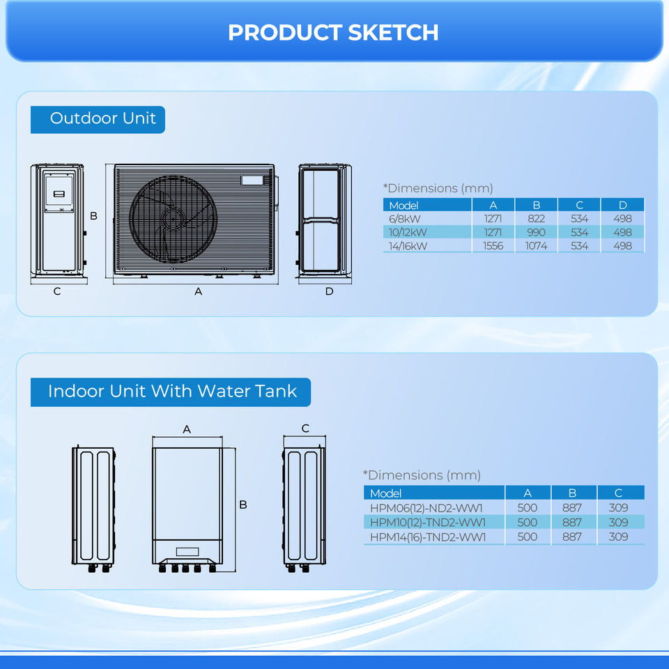 Nombre del Producto:Bomba de Calor Aire-Agua EVI DC Inverter R290 para Calefacción y Refrigeración