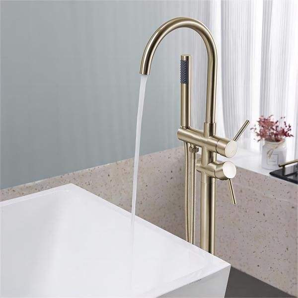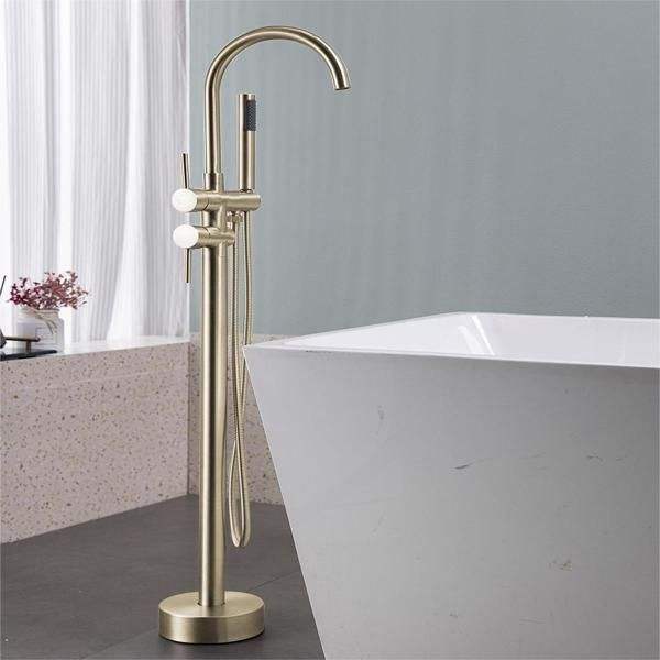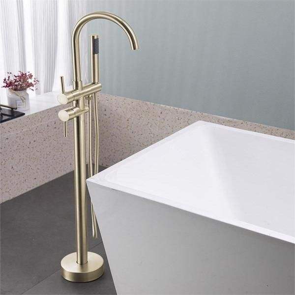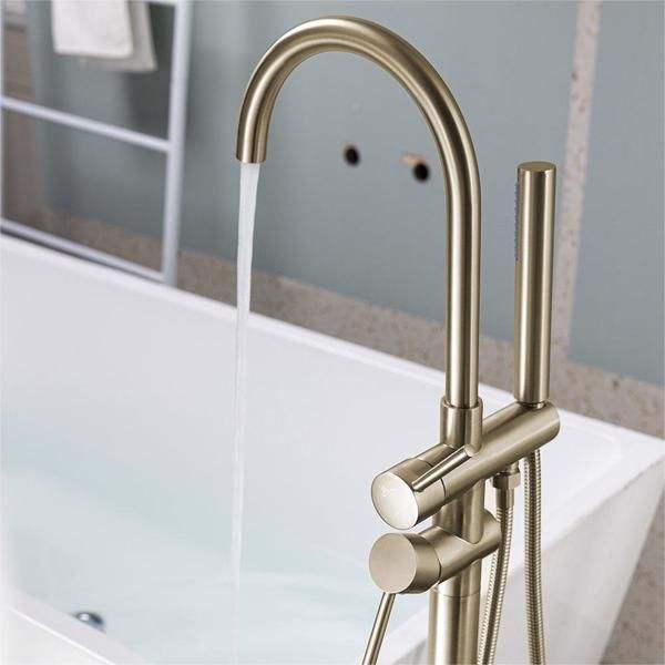 Juego de grifería de ducha y bañera de alto caudal independiente, mezclador de mano en oro cepillado para bañeras independientes, montaje en suelo