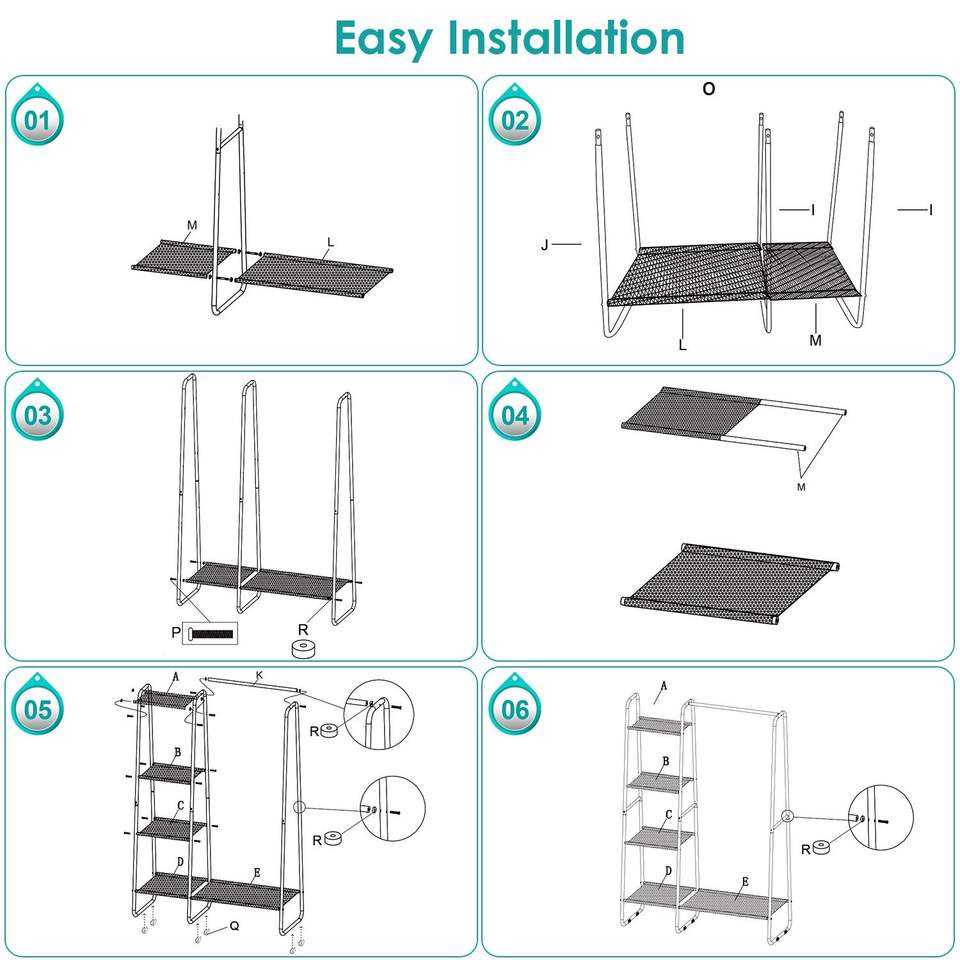 Perchero Metálico Independiente con Estantes para Organizar Ropa y Zapatos, Ideal para Exhibición y Almacenamiento en Armarios