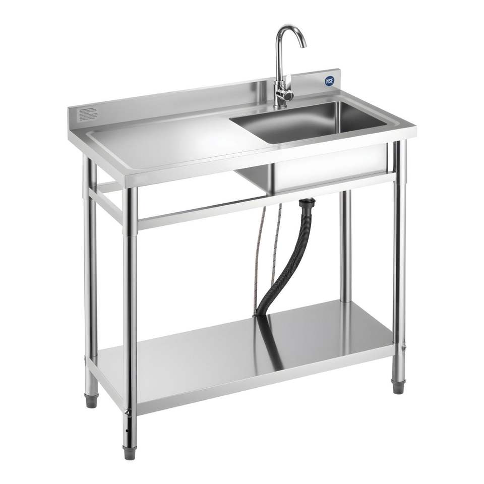 Fregadero Comercial Independiente de Acero Inoxidable con un Solo Tazón, Lavabo Izquierdo de 39.4 x 19.7 x 37 cm con Grifo de Agua Fría y Caliente