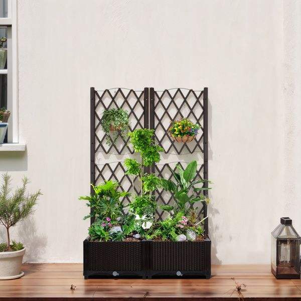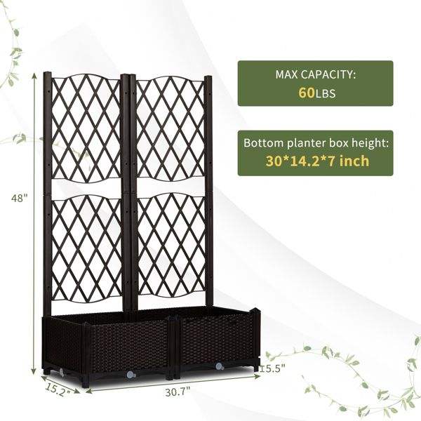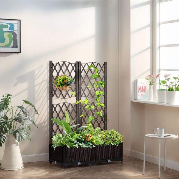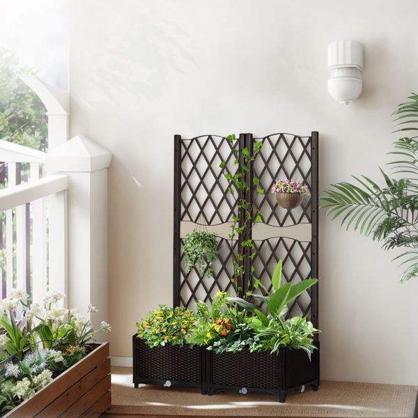 Jardinera Elevada de Mimbre con Soporte, para Exteriores, con Orificios de Drenaje para Plantas Trepadoras y Flores