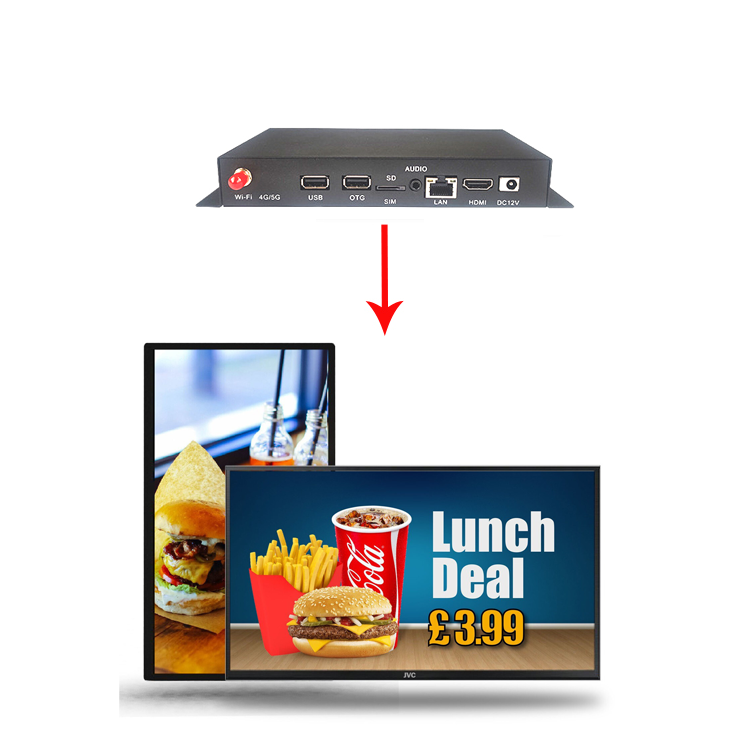 Suscripción gratuita basada en la nube CMS TV reproductor de señalización digital, kit de reproductor de señalización digital 4K