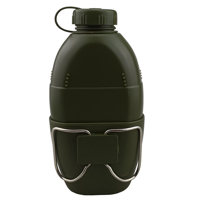 Muestra gratis 1L Hervidor de botella de cantimplora táctica con juego de tazas de cubierta para beber al aire libre, acampar, senderismo y supervivencia