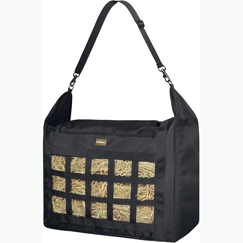 Paquete de 2 muestras gratis, bolsa de heno de alimentación lenta de caballo duradera de primera calidad con cierre a presión de metal y correa ajustable pesada