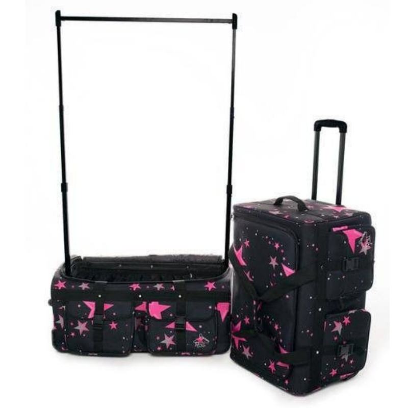 Muestra gratuita de maleta de 28 pulgadas con bolsa de baile desmontable, barra para ropa con ruedas telescópicas y bolsa de lona