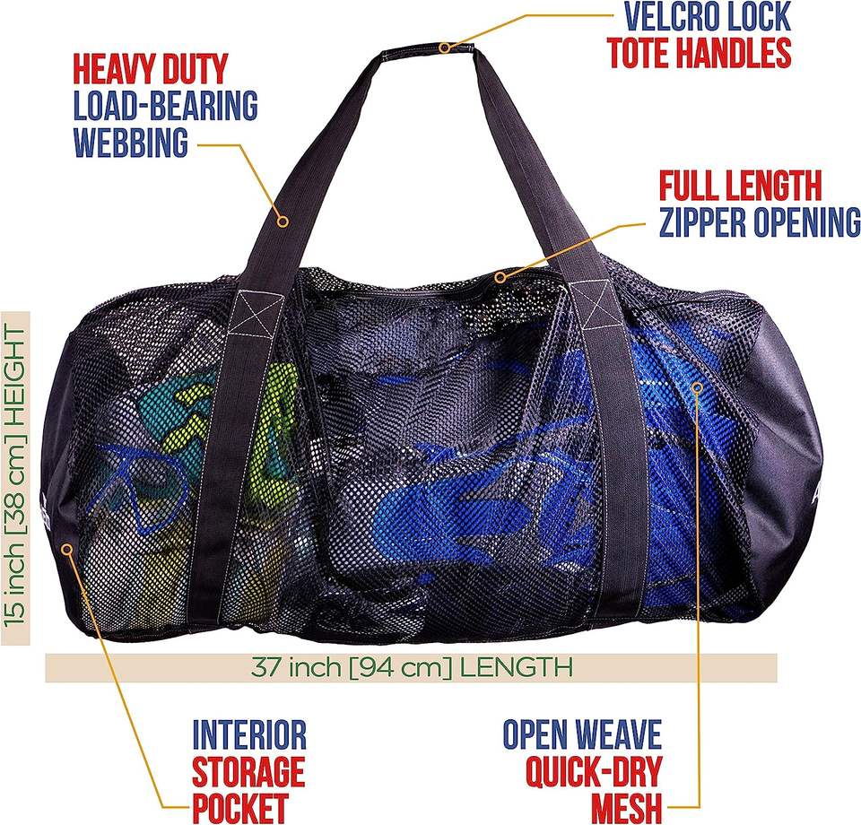 Muestra gratuita de equipo para actividades de playa: natación, buceo, esnórquel y gimnasio, mochila de buceo usada.