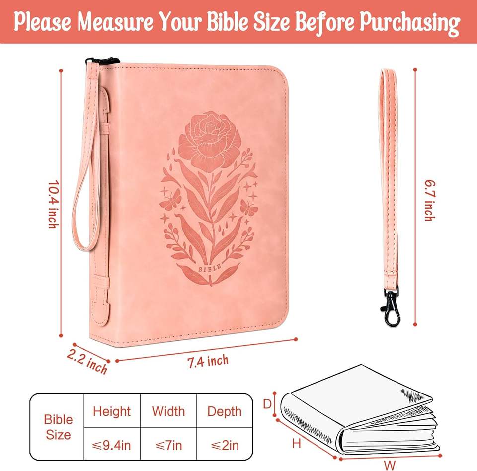 Funda de piel para Biblia con cierre de cremallera, estilo casual, diseño aislante, bolsillo frontal y asa (muestra gratuita)