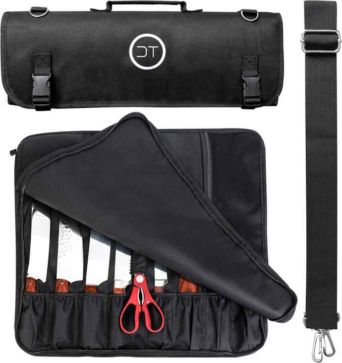 Estuche para Cuchillos de Chef de Lona con 10 Ranuras para Cuchillos y un Gran Bolsillo con Cremallera, Duradero, de Lona de 10 oz, Muestra Gratis