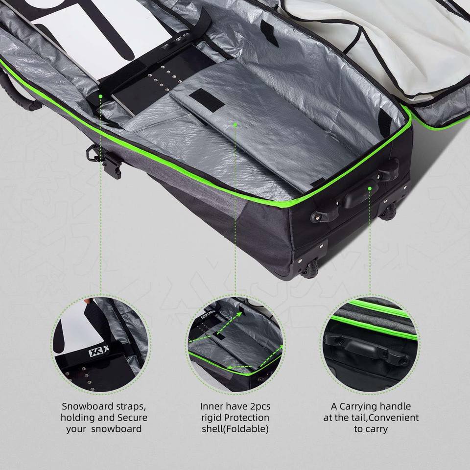 Bolsa de Snowboard acolchada personalizada de muestra gratis, bolsa de equipo de Snowboard de 165cm y 155 cm con gran bolsillo impermeable