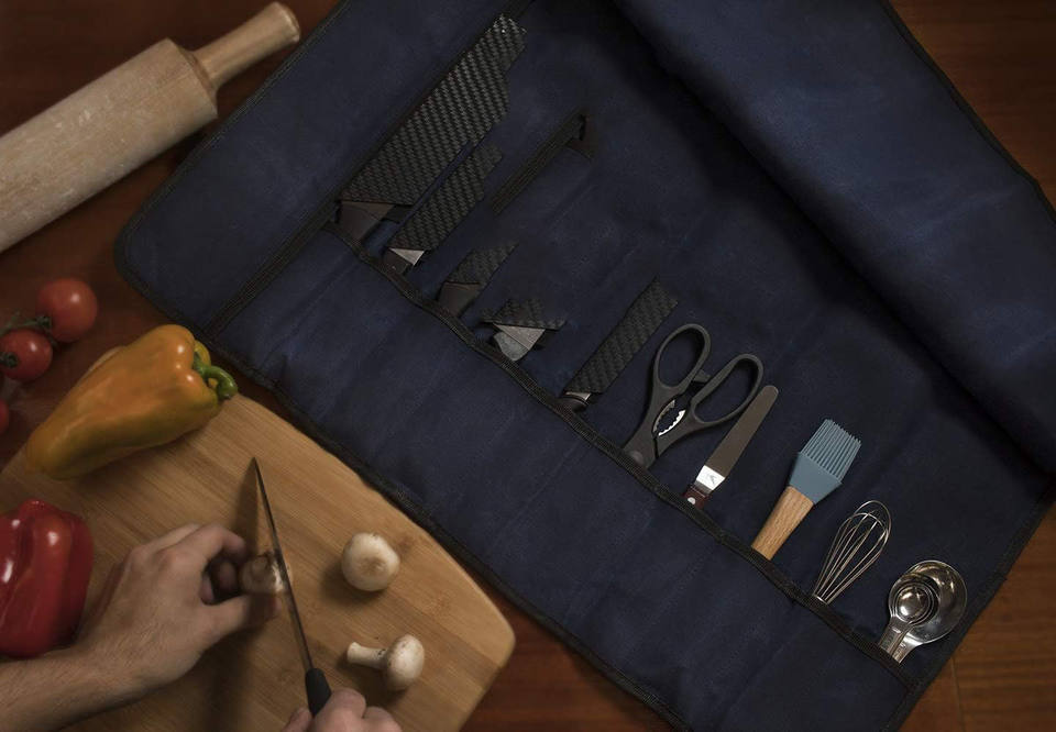 Muestra Gratuita, Portacuchillos de Cocina Portátil y Resistente Personalizado, Bolsa Enrollable para Cuchillos de Chef de Lona Encerada de 16 oz